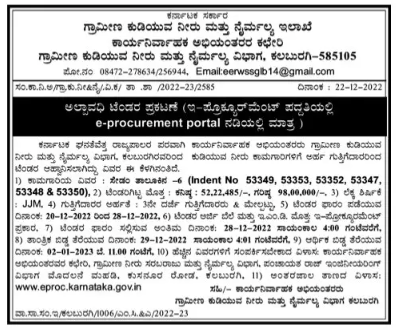 Water and Sanitation Department, Kalaburagirava invited tenders from qualified contractors for drinking
