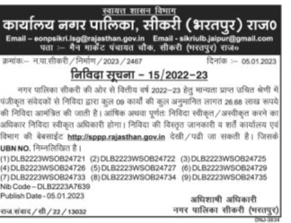 Tender for contractors in the appropriate category for the total estimated cost of 09 works of Rs 26.68 lakh. The authority to accept / reject the tender in excess or completely