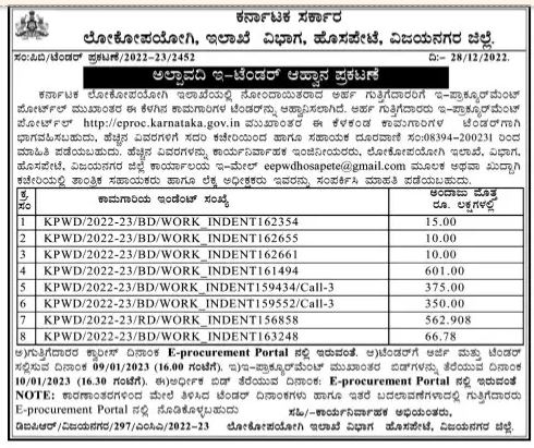 contractors registered with the Karnataka Public Works Department. Eligible contractors can participate