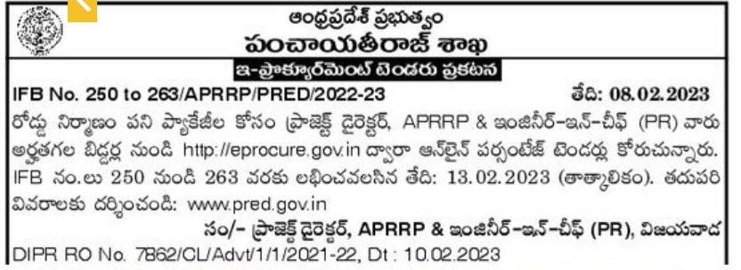 Tender for Department of Panchayat Raj, Government of Andhra Pradesh E-Procurement Tender Announcement