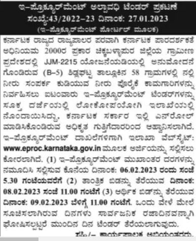 Tender for Department of Public Works at the appropriate grade to carry out water connection and drinking water supply works