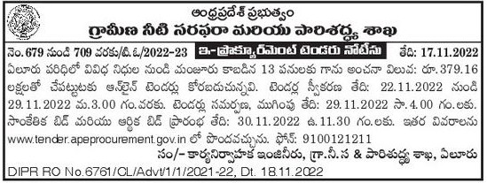 Tender for Department of Rural Water Supply and Sanitation for 13 works