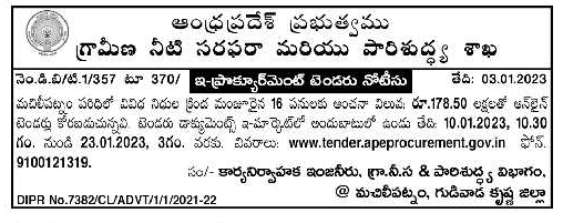 Tender for Department of Rural Water Supply and Sanitation of works