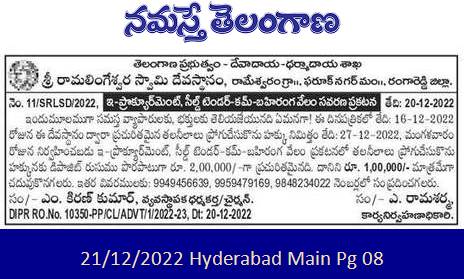 Tender for Department Shri Ramalingeswara Swamy Devasthanam, Rameswaram Gram. Farooq Nagar, Rangareddy District. RIGHT TO PROMOTE TALNEELAS PUBLISHED BY THIS DEVASTHAN