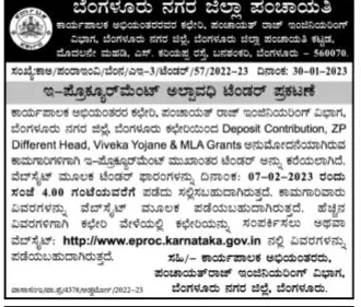 Tender for Deposit Contribution, ZP Different Head, Viveka Yojane & MLA Grants aro works. Tender forms can be obtained
