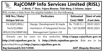 Tender for Design, Development & Implementation of Integrated Excise Management System 2.0
