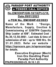 Tender for Design, Manufacture, Supply, Erection & Commissioning of 3200TPH Capacity Ship Loader at IOB.