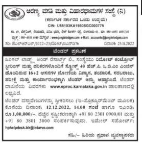 tender for design, manufacture, supply, testing and commissioning of 1612 seater boat with Stokes 40 HPOBM engine with remote control steering and accessories. Tender code is available on www.eproc.karnataka.gov.in.