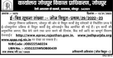 Tender for Development Authority, Jodhpur, electrical work has been done online through the first e-procurement process prescribed from the contractors for electrical works