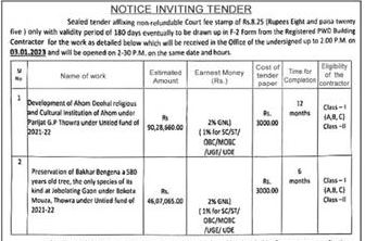Tender for Development of Ahon Dece and Cultural institution of hom under Parijat GP Thows under Untied fund of 2021-22