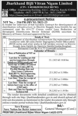 NIT no. 216/PR/JBVNL/2022-23