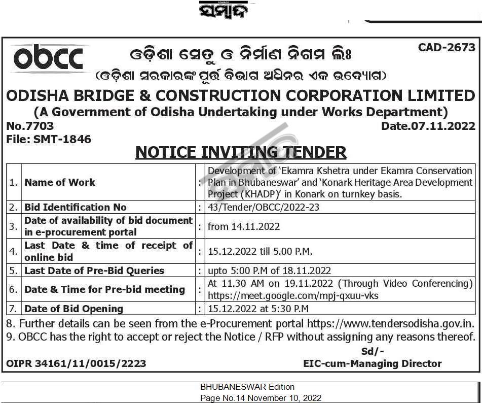 Development of ‘Ekamra Kshetra under Ekamra Conservation :Plan in Bhubaneswar’ and ‘Konark Heritage Area Development Project (KHADP)’ in Konark on turnkey basis.