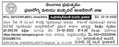 Tender for Development of Vaikuntha Dams in Kompalli (Repeat) and Kodangal (Repeat) and Meerpet (Repeat) Municipalities.
