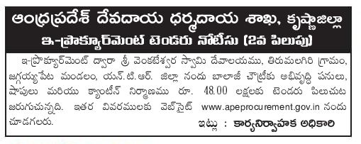 Tender for Development works, construction of shops and canteen at Balaji Chowtry in District