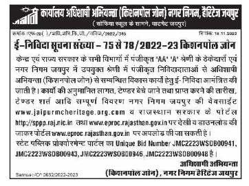 Tender for development works related to Executive Engineer (Kishanpole Zone)