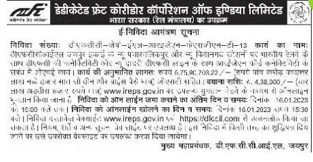 Tender for DFIL JAIPUR JAIPUR New Palikpur and New Kishanganjdation in respect of IJN NO connectivity with TDFC line of FC with Indian Railways
