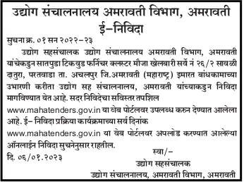 Tender for Directorate of Industries, Amravati for construction of building construction