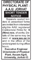 TENDER FOR DIRECTORATE OF PHYSICAL PLANT A.A.U. JORHAT