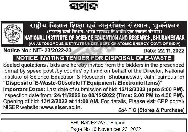 Important Dates: Last date of submission of bid: 12/12/2022 (upto 5:00 PM).