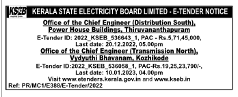 Tender for Office of the Chief Engineer (Distribution South), Power House Buildings, Thiruvananthapuram