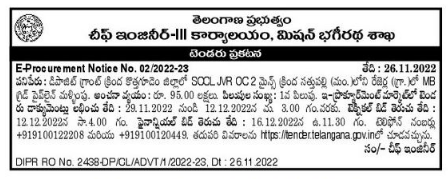 Tender for Diversion of MB Grid Pipeline at Razerla (Gr.) Satthupalli (Mn.) under SCCL JMR OC2 Mines in Kothagudem District