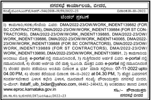 Tender for DMA/2022-23/OW/WORK_INDENT139885, DMA/2022-23/OW/ WORK_INDENT139886, DMA/2022-23/OW/WORK_INDENT140065, DMA/2022 23/0W/WORK_INDENT139888 (FOR SC CONTRACTORS), DMA/2022-23/OW/ WORK INDENT139889 (FOR ST CONTRACTORS), DMA/2022-23/0W/ WORK