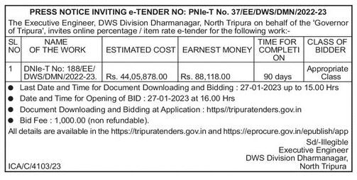 Tender for DNIe-T No: 188/EE/DWS/DMN/2022-23.