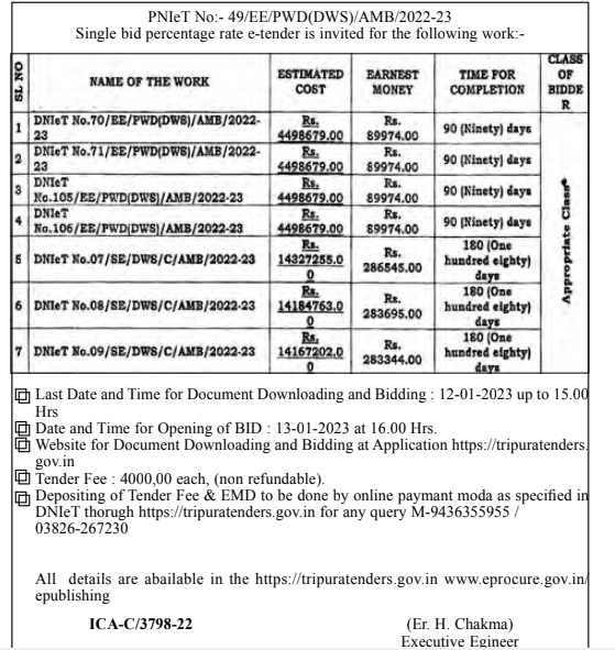 Tender for DNIeT No.71/EE/PWD(DWS)/AMB/2022