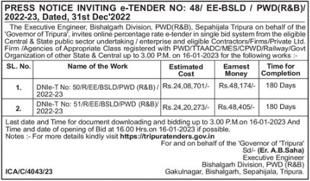 Tender for DNle-T No: 50/R/EE/BSLD/PWD (R&B)/ 2022-23