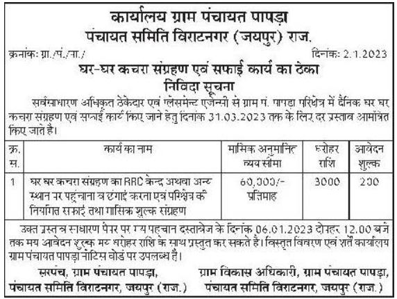 Tender for Door-to-door garbage collection to be delivered to the RRC center or other place, carrying out construction cleaning of the area and collecting gas fees