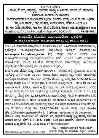 Tender for Dredging work in basin and navigation channel of Udupi Taluk Malpe fishing port,