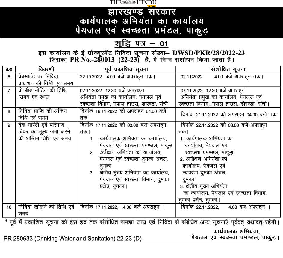 Drinking Water and Sanitation Division, Pakur 2. Office of the Superintending Engineer, Drinking Water and Sanitation Dumka Zone,