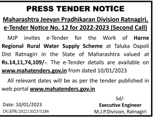 Tender for e-Tender for the Work of Harne Regional Rural Water Supply Scheme at Taluka Dapoli Dist Ratnagiri in the State of Maharashtra