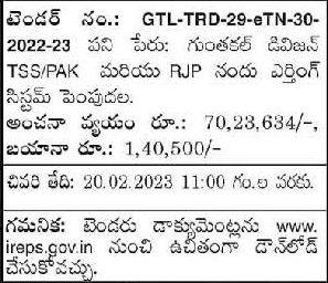 Tender for Earthing in Guntakal Division TSS/PAK and RJP System enhancement.