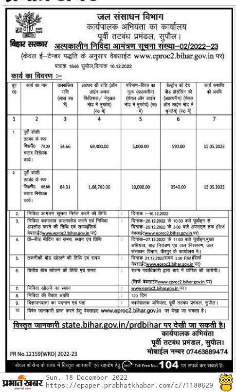 Tender for Eastern Koshi spur of the embankment 66.68 anti erosion Work .