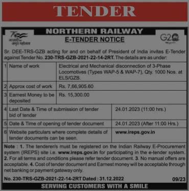 Tender for Electrical and Mechanical disconnection of 3-Phase Locomotives (Types WAP-5 & WAP-7), Qty. 1000 Nos at ELS/G28