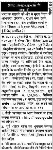 Tender for Electrical Erection/BZA – Guntur Division | Officers Rest House at Markapur with highmasts, timers etc. between Guntur – Guntakal Doubling Donakonda to Talupadu section