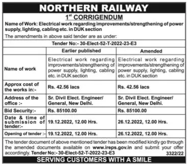 Tender for Electrical work regarding improvements/strengthening of power supply, lighting, cabling etc. in DUK section