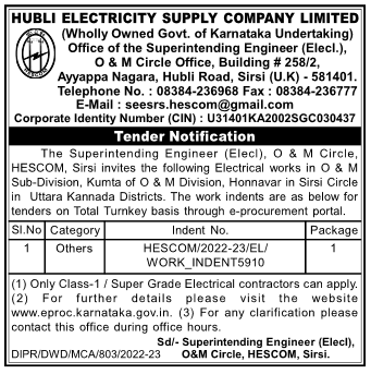 Electrical works in O & M Sub-Division, Kumta of O & M Division, Honnavar in Sirsi Circle in Uttara Kannada Districts.