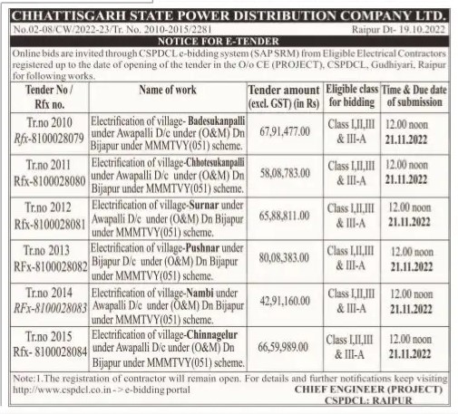 Tender for Electrification of village-Nambi under Awapalli D/c under (O&M) Dn Bijapur under MMMTVY(051) scheme.