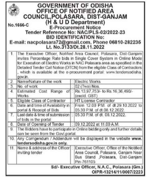 Tender for electronic works GOVERNMENT OF ODISHA OFFICE OF NOTIFIED AREA COUNCIL,POLASARA, DIST-GANJAM