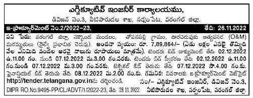 Tender for Emergency (O&M) Repairs (Railway Affected Pond) to Topanapalli Village, Topanapalli Village, Warangal District