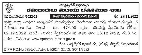 Tender for emergency repairs within Krishna district.