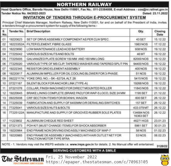 Tender for END FRAME NON DRIVING ENDASSLY MACHINED OF WAP-7