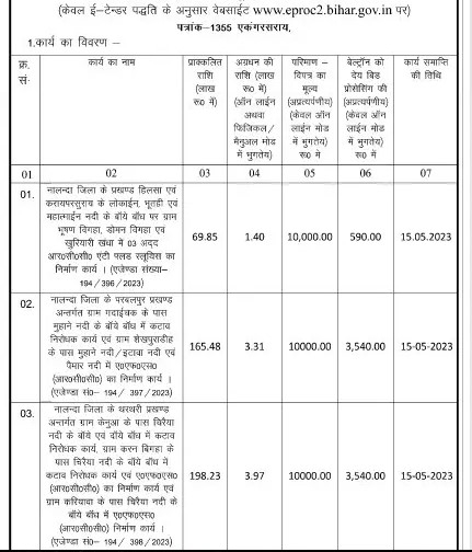 Tender for Erosion prevention work in left dam of mouth river near village Gadaichak under Parbalpur block of Nalanda district and construction work of AFS (RCC) in mouth river / Etawah river and Paimar river near village Sheikhpuradih.