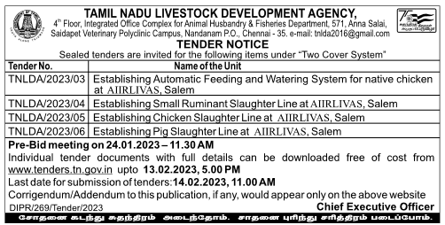 Tender for Establishing Chicken Slaughter Line at AIIRLIVAS, Salem