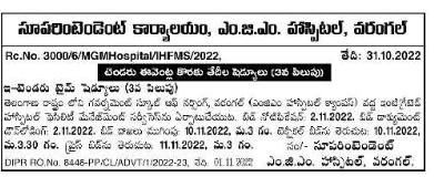 Tender for Establishment of Integrated Hospital Facility Management Services at Government School of Nursing, Warangal (MGM Hospital Campus),