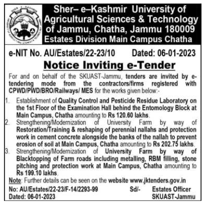 Tender for Establishment of Quality Control and Pesticide Residue Laboratory on the 1st Floor of the Examination Hall behind the Entomology Block at Main Campus,