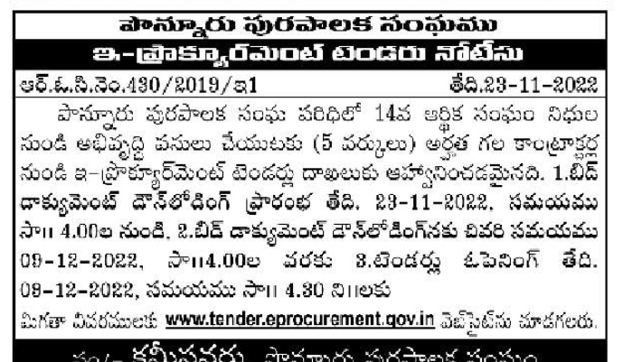 execution of development works (5 works) from 14th Finance Commission funds under Pannur Municipal Corporation.