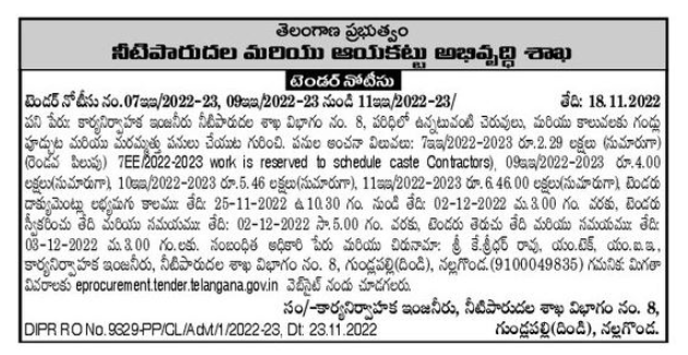 Executive Engineer Irrigation Department Dept.No. 8. Regarding the filling up and repairing of ponds and canals within the jurisdiction.
